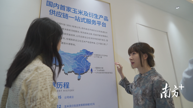在前海深港青年梦工场(北区),点点通供应链科技(深圳)创始人、香港青年孔繁曦介绍了点点通大宗农产品供销通系统:该系统针对玉米产业链的各个参与环节,可以实现“一键式采购”和“一键式销售”。
