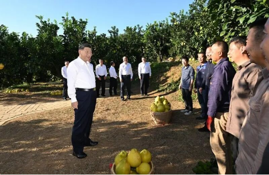 广东梅州市梅县素有“中国金柚之乡”的美誉,是全国最大的金柚商品基地,金柚种植已有百年历史。11月7日,习近平总书记来到梅县雁洋镇南福金柚种植基地,同果农和农技人员亲切交流。