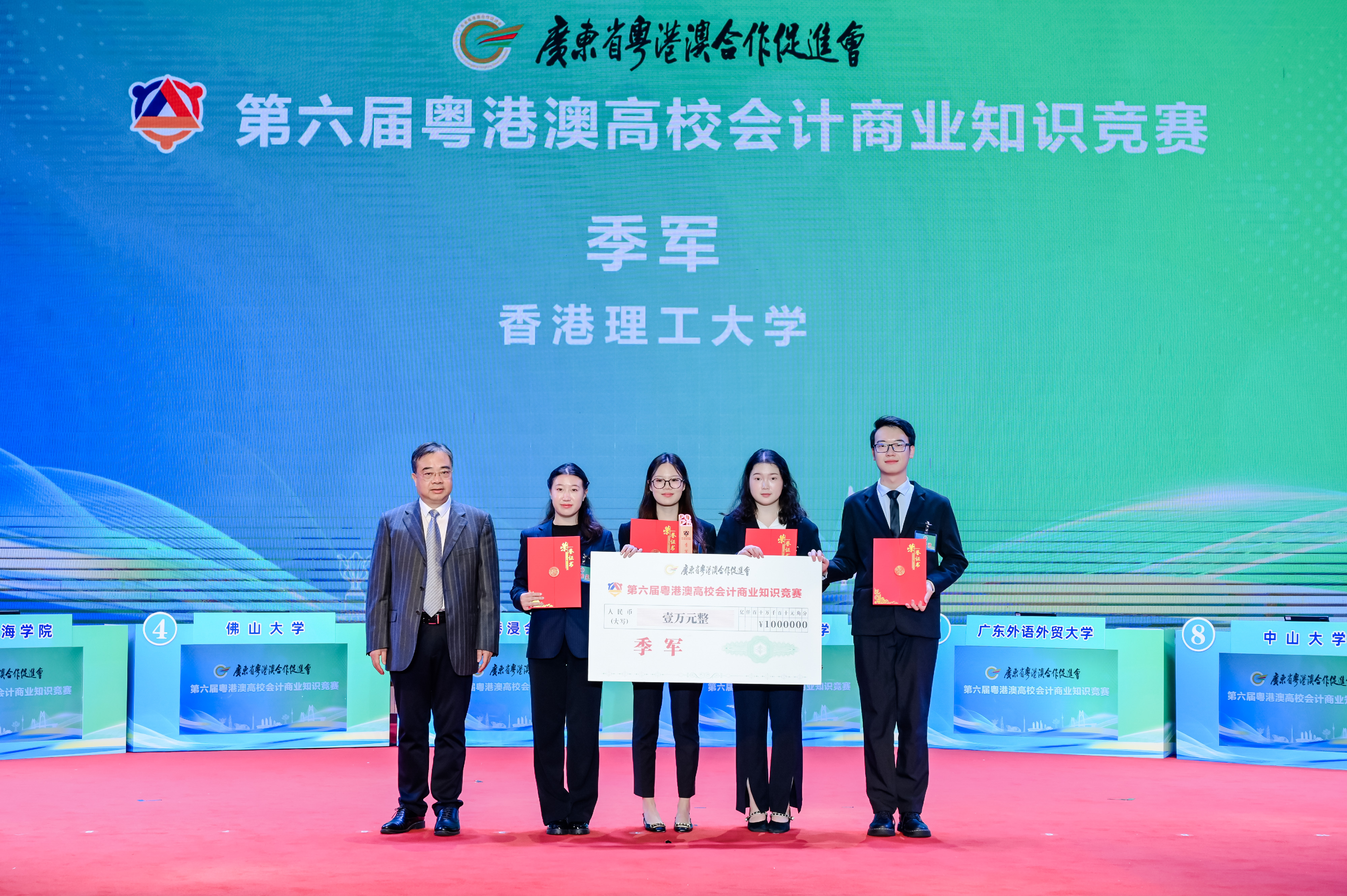 广东财经大学党委书记、广东省粤港澳合作促进会副会长郑贤操为香港理工大学颁发季军奖