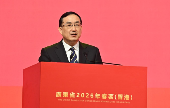 王曦代表广东省向各界嘉宾朋友表示热烈欢迎、致以新春祝福。他说,过去一年,习近平总书记亲临广东视察并出席十五运会开幕式,粤港澳三地携手为世界呈现一场精彩体育盛会,生动彰显“一国两制”的制度优势和湾区创新实践。在习近平总书记的亲切关怀和党中央的坚强领导下,粤港两地共同努力,全力推进粤港澳大湾区建设,在多个领域取得突破性进展。港珠澳大桥车流量屡创新高,主要城市间“一小时生活圈”从愿景走向现实。“深圳—香港—广州”创新集群跃居全球首位,大湾区国际科技创新中心全球影响力持续增强。经贸合作日益紧密,粤港货物贸易进出口额达1.28万亿元、增长12.5%。重大合作平台建设深入推进,规则衔接机制对接更加便利密切,粤港教育人文、青年交流、体育、旅游等领域合作持续深化。今年是“十五五”规划开局之年,广东将牢记习近平总书记殷殷嘱托,坚定不移贯彻“一国两制”方针,全力支持香港发挥背靠祖国、联通世界的独特优势,携手推进粤港五年规划衔接,不断完善基础设施互联互通,全方位深化重点领域合作,支持香港更好融入和服务国家发展大局,让发展成果更多惠及两地民众,努力为强国建设、民族复兴作出新的更大贡献。
