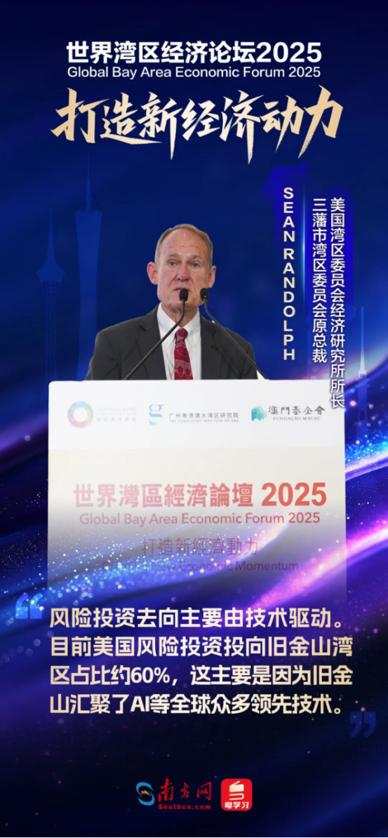 11月3日,世界湾区经济论坛2025开幕式在香港举行,全球顶尖行业专家、经济学者围绕“打造新经济动力”主题,共同探讨湾区经济未来发展与机遇。在论坛的主旨演讲环节,与会嘉宾通过剖析纽约、旧金山、东京等世界级湾区的成功经验,探索湾区切实可行的高质量发展路径,并为粤港澳大湾区把握新机遇、应对新挑战建言献策。下列海报直击现场,定格论坛嘉宾思维的闪光时刻。