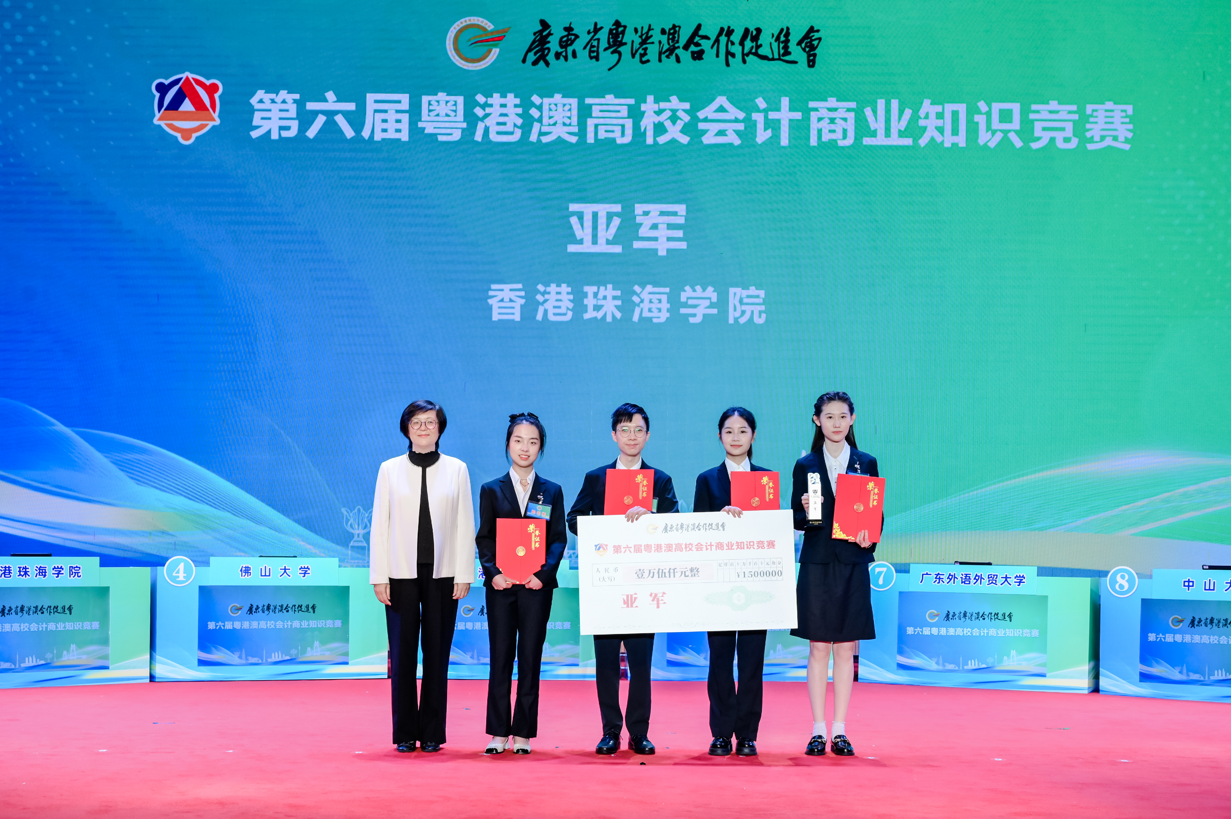 广东省委港澳办主任、广东省粤港澳合作促进会执行会长陈丽文为香港珠海学院颁发亚军奖