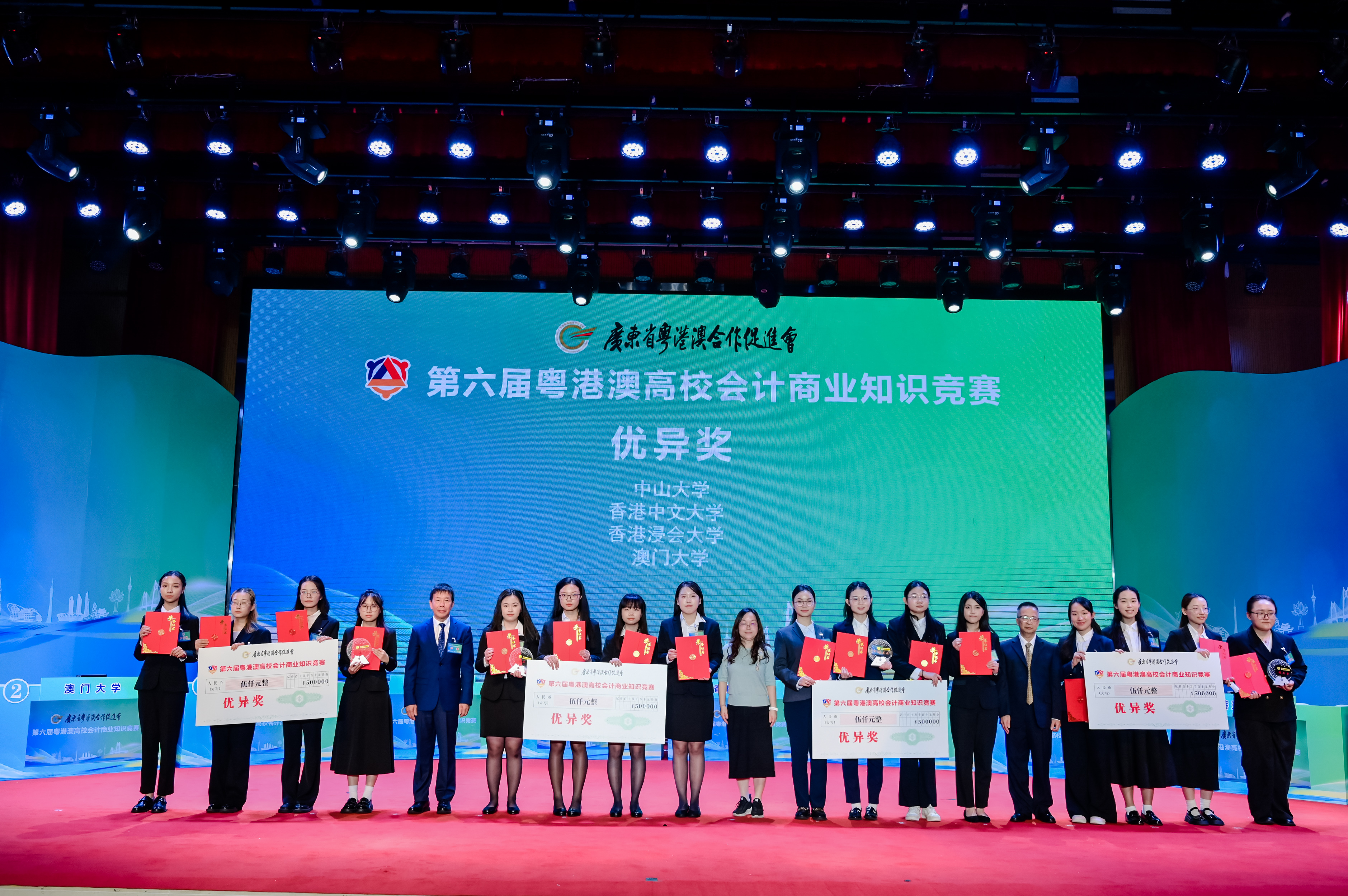 广东省审计厅二级巡视员彭镇悦、佛山大学副校长张敏、竞赛评委会主任王华为东莞城市学院、佛山大学、澳门科技大学、中山大学、香港中文大学、香港浸会大学、澳门大学参赛队颁发优异奖
