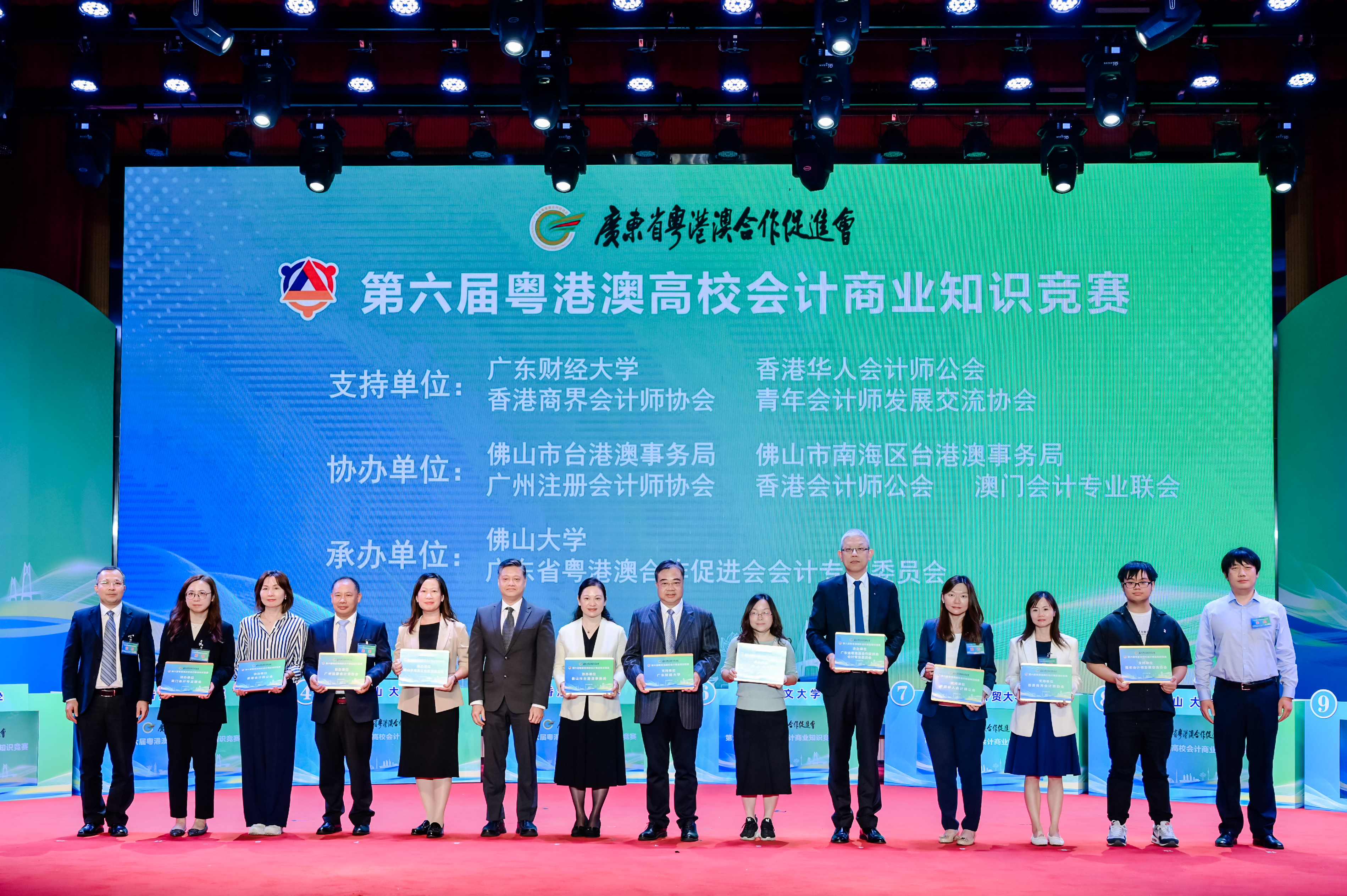 11月15日,由广东省委港澳办等单位指导,广东省粤港澳合作促进会主办的“第六届粤港澳高校会计商业知识竞赛”决赛在佛山大学举办。广东省人大常委会副主任、广东省总工会主席、广东省粤港澳合作促进会会长黄宁生出席并为参赛队伍颁奖,香港中联办、港澳特区政府、省直有关单位代表,大湾区有关地市港澳工作单位代表,促进会副会长、理事、监事代表,促进会各专业委员会代表,粤港澳三地会计界专家学者、专业人士、师生代表等粤港澳三地嘉宾350余人观赛。