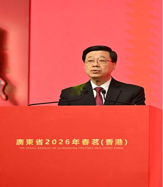 王曦代表广东省向各界嘉宾朋友表示热烈欢迎、致以新春祝福。他说,过去一年,习近平总书记亲临广东视察并出席十五运会开幕式,粤港澳三地携手为世界呈现一场精彩体育盛会,生动彰显“一国两制”的制度优势和湾区创新实践。在习近平总书记的亲切关怀和党中央的坚强领导下,粤港两地共同努力,全力推进粤港澳大湾区建设,在多个领域取得突破性进展。港珠澳大桥车流量屡创新高,主要城市间“一小时生活圈”从愿景走向现实。“深圳—香港—广州”创新集群跃居全球首位,大湾区国际科技创新中心全球影响力持续增强。经贸合作日益紧密,粤港货物贸易进出口额达1.28万亿元、增长12.5%。重大合作平台建设深入推进,规则衔接机制对接更加便利密切,粤港教育人文、青年交流、体育、旅游等领域合作持续深化。今年是“十五五”规划开局之年,广东将牢记习近平总书记殷殷嘱托,坚定不移贯彻“一国两制”方针,全力支持香港发挥背靠祖国、联通世界的独特优势,携手推进粤港五年规划衔接,不断完善基础设施互联互通,全方位深化重点领域合作,支持香港更好融入和服务国家发展大局,让发展成果更多惠及两地民众,努力为强国建设、民族复兴作出新的更大贡献。